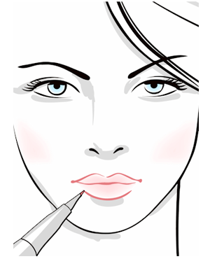 - ტუჩის კონტურის მონახაზი ტუშით;